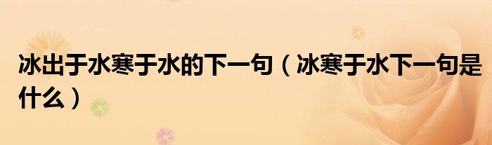大家好,小晋来为大家解答以下问题,关于冰出于水寒于水的下一句,冰寒于水下一句是什么很多人还不知道,今天让我们一起来看看吧!