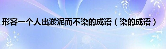 大家好,小晋来为大家解答以下问题,关于形容一个人出淤泥而不染的成语,染的成语很多人还不知道,今天让我们一起来看看吧!