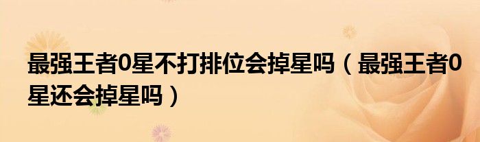 大家好,小晋来为大家解答以下问题,关于最强王者0星不打排位会掉星吗,最强王者0星还会掉星吗很多人还不知道,今天让我们一起来看看吧!