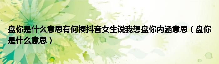 大家好,小晋来为大家解答以下问题,关于盘你是什么意思有何梗抖音女生说我想盘你内涵意思,盘你是什么意思很多人还不知道,今天让我们一起来看看吧!
