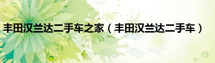 关于丰田汉兰达二手车之家,丰田汉兰达二手车这个很多人还不知道,今天菲菲来为大家解答以上的问题,现在让我们一起来看看吧!