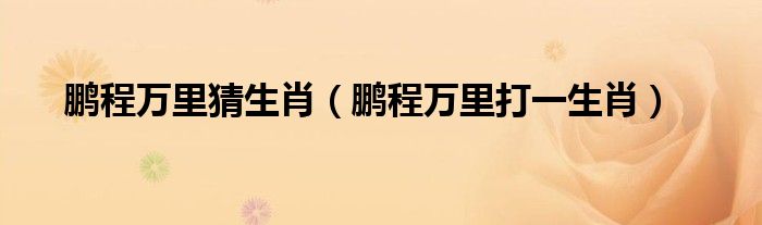 大家好,小晋来为大家解答以下问题,关于鹏程万里猜生肖,鹏程万里打一生肖很多人还不知道,今天让我们一起来看看吧!