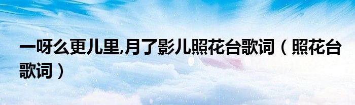 关于一呀么更儿里,月了影儿照花台歌词,照花台歌词这个很多人还不知道,今天菲菲来为大家解答以上的问题,现在让我们一起来看看吧!