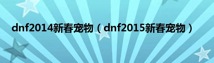 关于dnf2014新春宠物,dnf2015新春宠物这个很多人还不知道,今天菲菲来为大家解答以上的问题,现在让我们一起来看看吧!