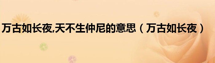 关于万古如长夜,天不生仲尼的意思,万古如长夜这个很多人还不知道,今天菲菲来为大家解答以上的问题,现在让我们一起来看看吧!