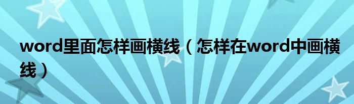 大家好,来宝来为大家解答以下问题,word里面怎样画横线,怎样在word中画横线很多人还不知道,今天让我们一起来看看吧!
