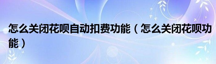 怎么关闭花呗自动扣费功能(怎么关闭花呗功能)