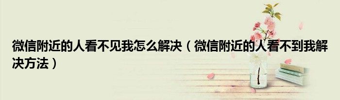 关于微信附近的人看不见我怎么解决,微信附近的人看不到我解决方法这个很多人还不知道,今天菲菲来为大家解答以上的问题,现在让我们一起来看看吧!