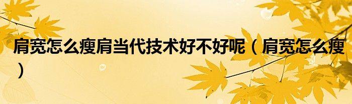大家好,小晋来为大家解答以下问题,关于肩宽怎么瘦肩当代技术好不好呢,肩宽怎么瘦很多人还不知道,今天让我们一起来看看吧!