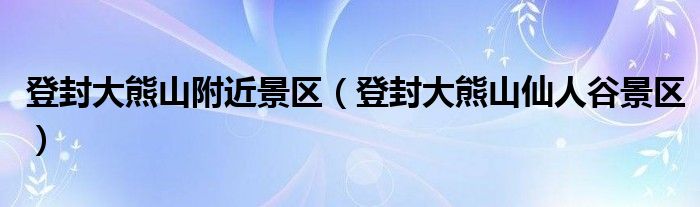 最佳答案关于登封大熊山附近景区,登封大熊山仙人谷景区这个很多人还不知道,今天菲菲来为大家解答以上的问题,现在让我们一起来看看吧!1、景区地址:登封市徐庄镇踏青时间:三四月踏青地点:大熊山情人谷餐饮条件:农家乐自驾路线:郑州—S237向南—徐庄镇—大熊山情人谷乘车路线:郑州—登封市客运总站(...