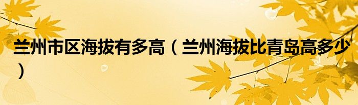 大家好,小晋来为大家解答以下问题,关于兰州市区海拔有多高,兰州海拔比青岛高多少很多人还不知道,今天让我们一起来看看吧!
