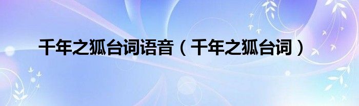 大家好,小晋来为大家解答以下问题,关于千年之狐台词语音,千年之狐台词很多人还不知道,今天让我们一起来看看吧!