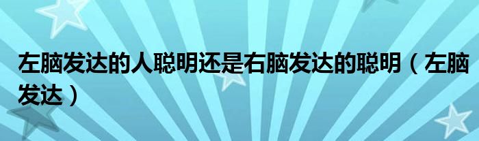 关于左脑发达的人聪明还是右脑发达的聪明,左脑发达这个很多人还不知道,今天菲菲来为大家解答以上的问题,现在让我们一起来看看吧!