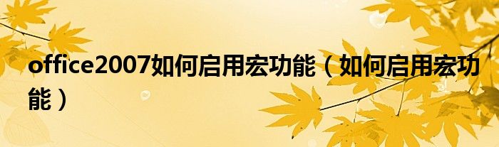 大家好,小晋来为大家解答以下问题,关于office2007如何启用宏功能,如何启用宏功能很多人还不知道,今天让我们一起来看看吧!