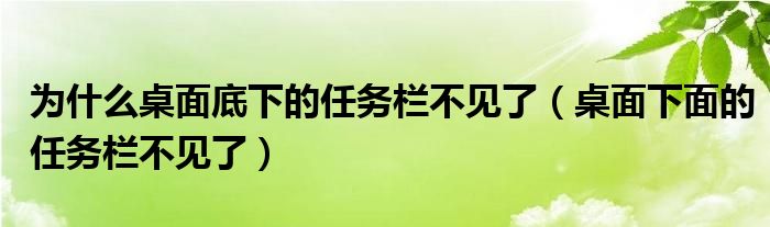 大家好,来宝来为大家解答以下问题,为什么桌面底下的任务栏不见了,桌面下面的任务栏不见了很多人还不知道,今天让我们一起来看看吧!