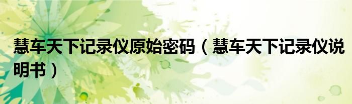 大家好,小晋来为大家解答以下问题,关于慧车天下记录仪原始密码,慧车天下记录仪说明书很多人还不知道,今天让我们一起来看看吧!