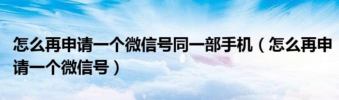 大家好,小晋来为大家解答以下问题,关于怎么再申请一个微信号同一部手机,怎么再申请一个微信号很多人还不知道,今天让我们一起来看看吧!