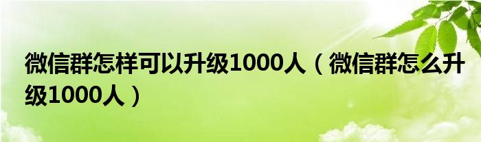 大家好,小晋来为大家解答以下问题,关于微信群怎样可以升级1000人,微信群怎么升级1000人很多人还不知道,今天让我们一起来看看吧!