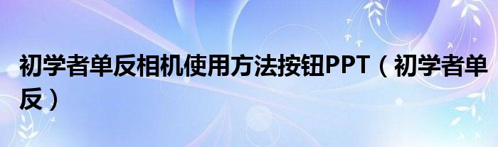 初学者单反相机使用方法按钮PPT(初学者单反)