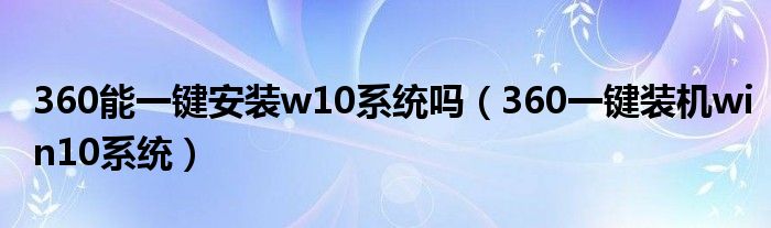 关于360能一键安装w10系统吗,360一键装机win10系统这个很多人还不知道,今天菲菲来为大家解答以上的问题,现在让我们一起来看看吧!