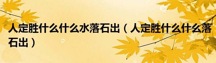 大家好,小晋来为大家解答以下问题,关于人定胜什么什么水落石出,人定胜什么什么落石出很多人还不知道,今天让我们一起来看看吧!