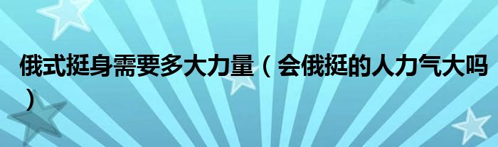 大家好,小晋来为大家解答以下问题,关于俄式挺身需要多大力量,会俄挺的人力气大吗很多人还不知道,今天让我们一起来看看吧!
