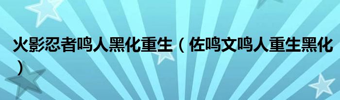 火影忍者鸣人黑化重生(佐鸣文鸣人重生黑化)