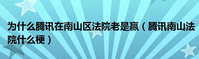 大家好,小晋来为大家解答以下问题,关于为什么腾讯在南山区法院老是赢,腾讯南山法院什么梗很多人还不知道,今天让我们一起来看看吧!