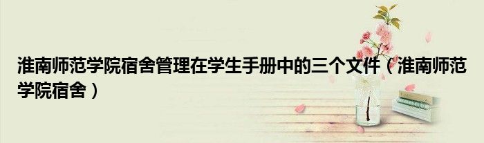 关于淮南师范学院宿舍管理在学生手册中的三个文件,淮南师范学院宿舍这个很多人还不知道,今天菲菲来为大家解答以上的问题,现在让我们一起来看看吧!