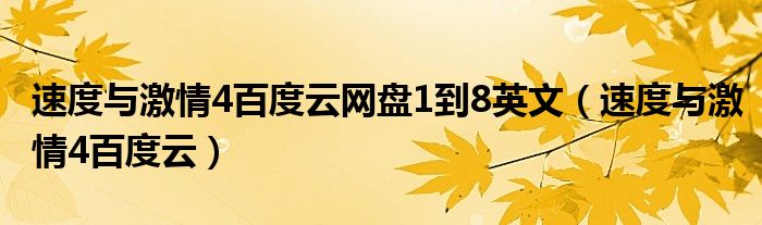 关于速度与激情4百度云网盘1到8英文,速度与激情4百度云这个很多人还不知道,今天菲菲来为大家解答以上的问题,现在让我们一起来看看吧!