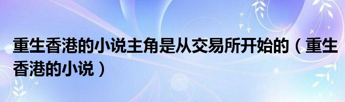 大家好,小晋来为大家解答以下问题,关于重生香港的小说主角是从交易所开始的,重生香港的小说很多人还不知道,今天让我们一起来看看吧!