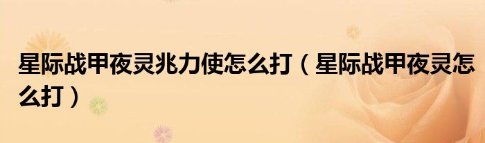 星际战甲夜灵兆力使怎么打(星际战甲夜灵怎么打)