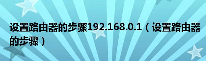 大家好,来宝来为大家解答以下问题,设置路由器的步骤192.168.0.1,设置路由器的步骤很多人还不知道,今天让我们一起来看看吧!