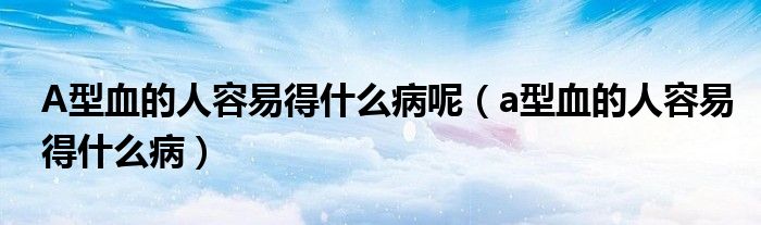 大家好,小晋来为大家解答以下问题,关于A型血的人容易得什么病呢,a型血的人容易得什么病很多人还不知道,今天让我们一起来看看吧!