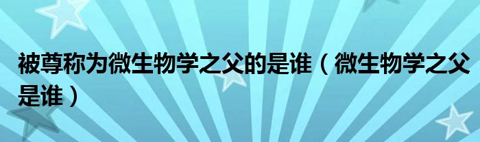 大家好,小晋来为大家解答以下问题,关于被尊称为微生物学之父的是谁,微生物学之父是谁很多人还不知道,今天让我们一起来看看吧!