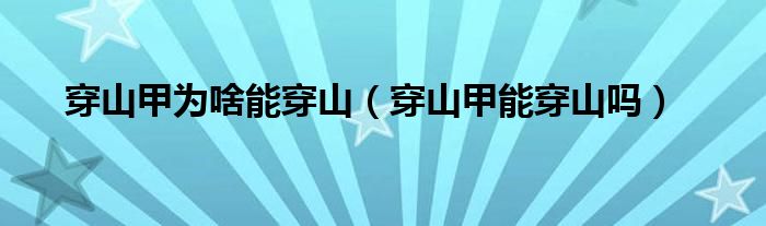大家好,小晋来为大家解答以下问题,关于穿山甲为啥能穿山,穿山甲能穿山吗很多人还不知道,今天让我们一起来看看吧!