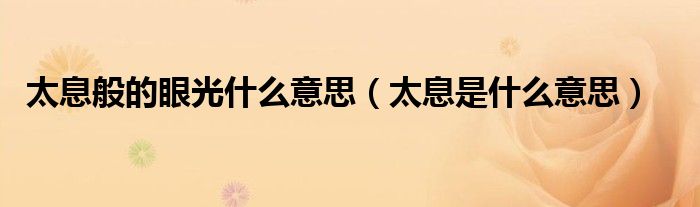 关于太息般的眼光什么意思,太息是什么意思这个很多人还不知道,今天菲菲来为大家解答以上的问题,现在让我们一起来看看吧!