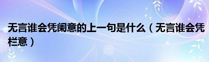 大家好,小晋来为大家解答以下问题,关于无言谁会凭阑意的上一句是什么,无言谁会凭栏意很多人还不知道,今天让我们一起来看看吧!
