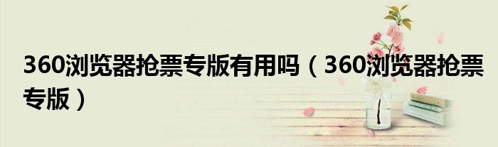 360浏览器抢票专版有用吗,360浏览器抢票专版很多人还不知道,乐乐来为大家解答以上问题,现在让我们一起来看看吧!