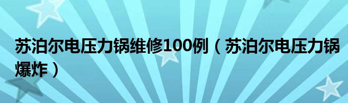 苏泊尔电压力锅维修100例,苏泊尔电压力锅爆炸很多人还不知道,乐乐来为大家解答以上问题,现在让我们一起来看看吧!