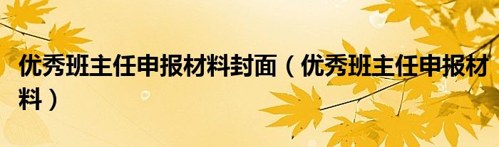 关于优秀班主任申报材料封面,优秀班主任申报材料这个很多人还不知道,今天菲菲来为大家解答以上的问题,现在让我们一起来看看吧!