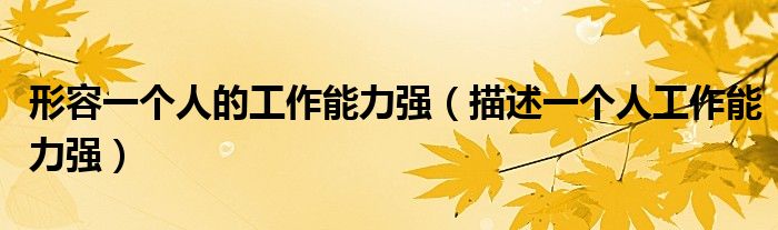 关于形容一个人的工作能力强,描述一个人工作能力强这个很多人还不知道,今天菲菲来为大家解答以上的问题,现在让我们一起来看看吧!