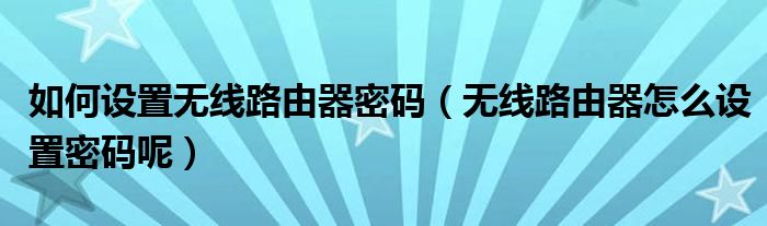 关于如何设置无线路由器密码,无线路由器怎么设置密码呢这个很多人还不知道,今天菲菲来为大家解答以上的问题,现在让我们一起来看看吧!