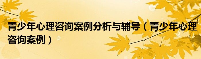 关于青少年心理咨询案例分析与辅导,青少年心理咨询案例这个很多人还不知道,今天菲菲来为大家解答以上的问题,现在让我们一起来看看吧!