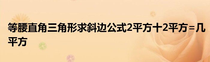 关于等腰直角三角形求斜边公式2平方十2平方=几平方这个很多人还不知道,今天菲菲来为大家解答以上的问题,现在让我们一起来看看吧!
