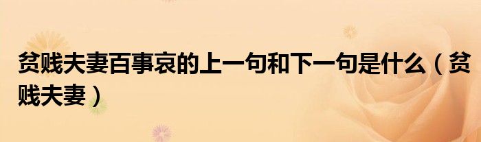 关于贫贱夫妻百事哀的上一句和下一句是什么,贫贱夫妻这个很多人还不知道,今天菲菲来为大家解答以上的问题,现在让我们一起来看看吧!
