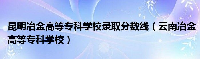 关于昆明冶金高等专科学校录取分数线,云南冶金高等专科学校这个很多人还不知道,今天菲菲来为大家解答以上的问题,现在让我们一起来看看吧!