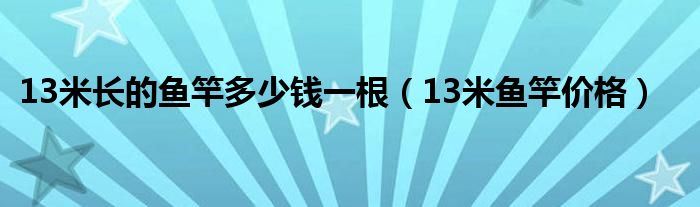 1、您好 现在市场上出手的鱼竿 尺码都为2.7 3.6 4.5 5.4 6.3 7.2 8.1米 长于9米的钓竿我还没看见过 也许你说的13米钓竿很贵吧 500-800参考价格。
