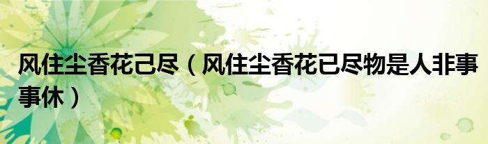 关于风住尘香花己尽,风住尘香花已尽物是人非事事休这个很多人还不知道,今天菲菲来为大家解答以上的问题,现在让我们一起来看看吧!