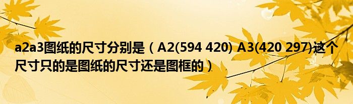 关于a2a3图纸的尺寸分别是,A2(594 420) A3(420 297)这个尺寸只的是图纸的尺寸还是图框的这个很多人还不知道,今天菲菲来为大家解答以上的问题,现在让我们一起来看看吧!